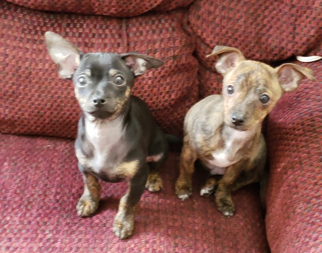 We had our first vet appointment last night, so I brought this up and they can be crated together overnight, no problem. This was quite a relief for us. But they should have plenty of time apart from each other as well, so they can grow and develop as individuals. And we have to get them around as many different people as possible during the first few months to socialize them. We have a pen for them, in our living room, that they sleep in. Their potty pad is in there as well, and they’re getting more and more trained to only pee and poo on the pad.