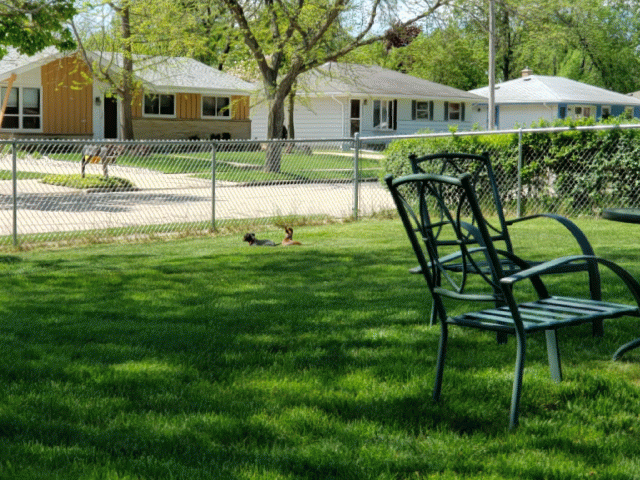 The dogs sure love lounging out in the backyard. They’ll jump up and tear after anything or anyone that comes by though. Yesterday I even took them both down to Library Park and we walked around the block–all three of us at once, for the first time. They need a lot more practice, but I was surprised how well they actually did, having such totally different personalities.